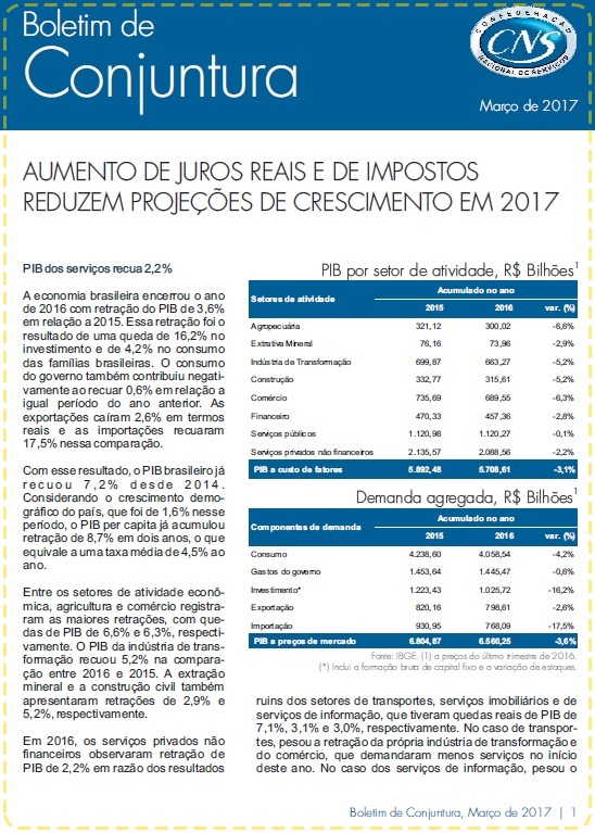Boletim de Conjuntura CNS – Março/2017. Informativo mensal disponibilizado pela Confederação Nacional de Serviços