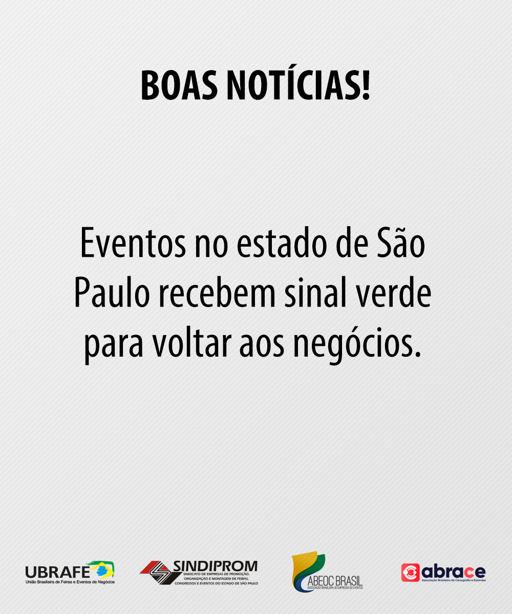 Um rigoroso protocolo de segurança sanitária elaborado por Ubrafe, Sindiprom, Abeoc e Abrace, que abrange medidas de higiene, foi aprovado pelo Corpo Médico do Hospital das Clínicas. Este protocolo é para garantir que os eventos em São Paulo oferecem um ambiente seguro para receber qualquer tamanho de evento.