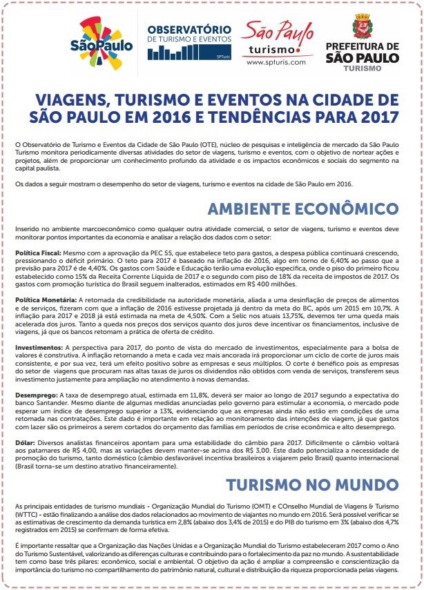 Viagens, turismo e eventos na cidade de São Paulo em 2016 e tendências para 2017